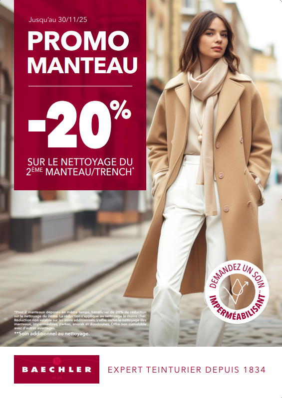 DU 1er octobre au 30 novembre, -20% sur le 2ème manteau!*